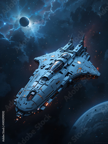 Obraz premium Futuristic Spaceship in Deep Space
