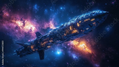 Obraz premium Futuristic Spaceship in Deep Space Starry Night