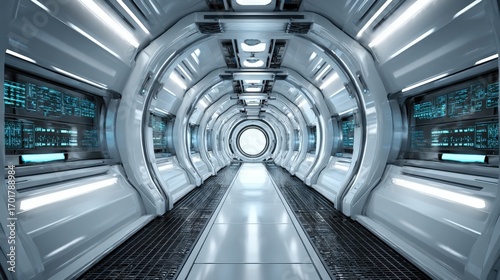 Obraz premium Futuristic Spaceship Interior: Clean, Modern Design with Illuminated Tunnel for Science Fiction and Technology Concepts