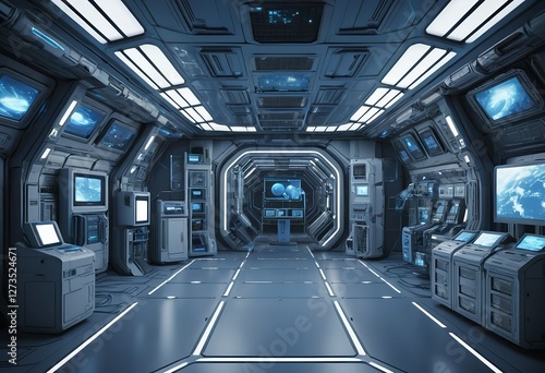 © Teeranan, Obraz premium Futuristic Spaceship Interior Corridor