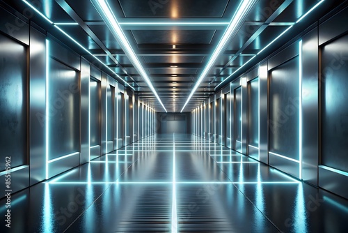 Fototapeta premium Futuristic Spaceship Interior With Blue Glowing Lights