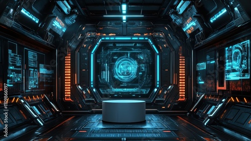 Obraz premium Futuristic Spaceship Interior With Central Display And Platform