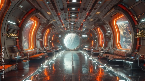 Obraz premium Futuristic Spaceship Interior with Earth View