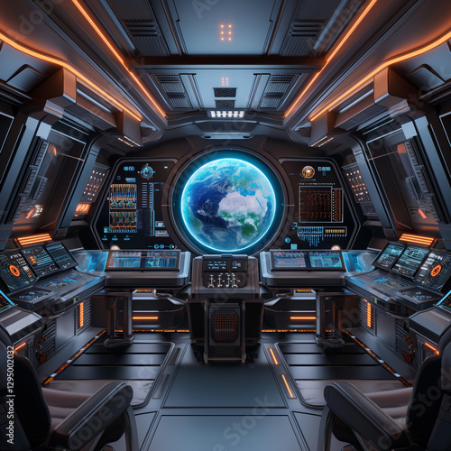 Obraz premium Futuristic Spaceship Interior with Earth View from Window