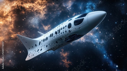 Obraz premium Futuristic Spaceship Soaring Through Nebula