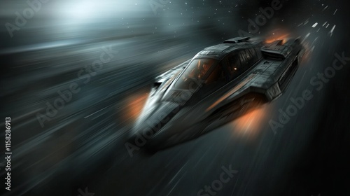 Obraz premium Futuristic spaceship soaring through the cosmos at high speed, illuminated by bright engines.