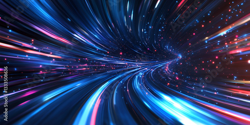 © jimmy Li, Naklejka premium Futuristic Speed Motion Light Trails on Curved Road