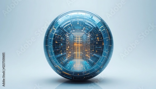 Obraz premium Futuristic Sphere Enclosing Digital Technological Corridor