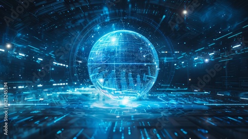 Fototapeta premium Futuristic sphere with digital data and code for technology or science themed designs