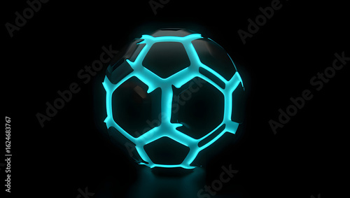 Obraz premium Futuristic Sphere with Glowing Blue Hexagonal Pattern on Black Background for...