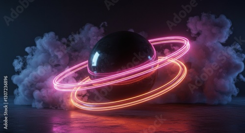 © Cloudy, Obraz premium Futuristic Sphere with Neon Trails