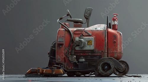 © Infinity, Fototapeta premium Futuristic Street Cleaner Concept: A Rusty Red Machine