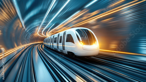 Fototapeta premium Futuristic subway train speeding through vibrant underground tunnel,...