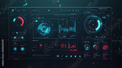 Fototapeta premium futuristic survey panel with a dark aesthetic, glowing UI elements, and...