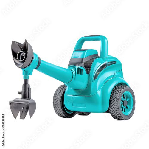 © wiwat apisithpinyo, Fototapeta premium Futuristic Teal Robotic Digger with Black Scoop and Wheels