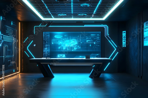 Fototapeta premium Futuristic tech conference booth design with space for text