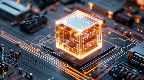 © terat, Fototapeta premium Futuristic Tech: glowing CPU on Circuit Board - Artificial Intellig.