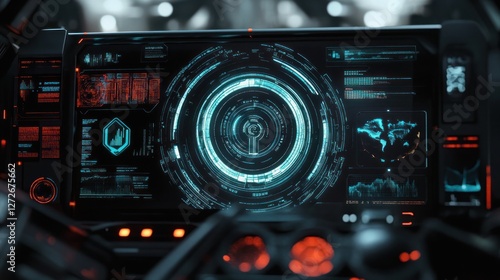 Obraz premium Futuristic Tech Interface: A Cyberpunk-Style Digital Dashboard Display