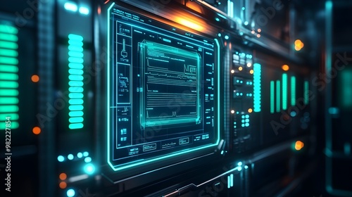Fototapeta premium Futuristic Tech Interface - Blue and Orange Glowing Screen