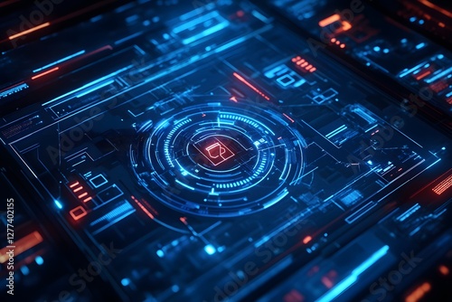 Obraz premium Futuristic Tech Interface, Blue and Orange HUD