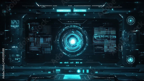 Obraz premium Futuristic Tech Interface: Cyan Digital Display