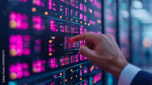 Obraz premium Futuristic Tech Interface Hand Interacting with Neon Display