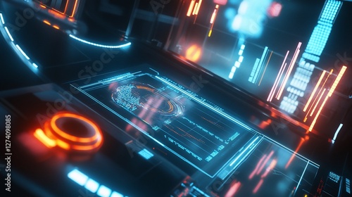 Obraz premium Futuristic Tech Interface: Neon Displays and Digital Data Streams