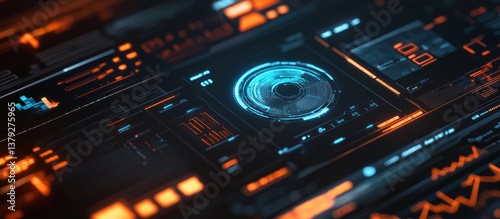© Fandi Comp, Obraz premium Futuristic Tech Interface: Neon Hues and Digital Design