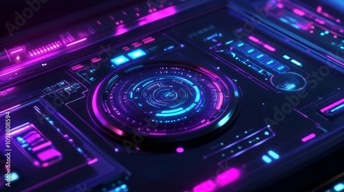 Obraz premium Futuristic Tech Interface with Glowing Neon Lights