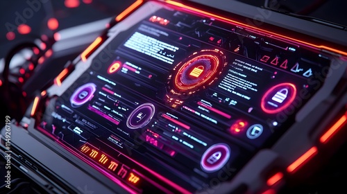 Obraz premium futuristic tech ui: cyber security interface - cyberpunk aesthetics