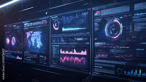 Fototapeta premium Futuristic Tech Wall Displays Global Data Intriguing Insights