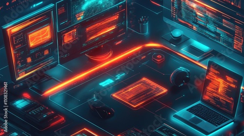 Obraz premium Futuristic Tech Workspace with Neon Accents