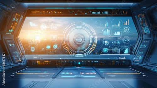Fototapeta premium Futuristic Technological Control Panel with Digital Displays and Infographics