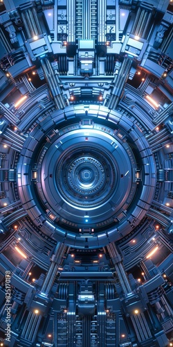 © AucArtStudio, Fototapeta premium futuristic, technology, abstract, background, circular, glowing, lights, mechanism, machine, robot, cyberpunk, science, fiction, digital, art, 3d, circuit, board, electronics, steel, chrome
