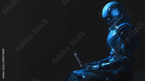 Naklejka premium Futuristic technology, Artificial intelligence, Robot using laptop with space for text.