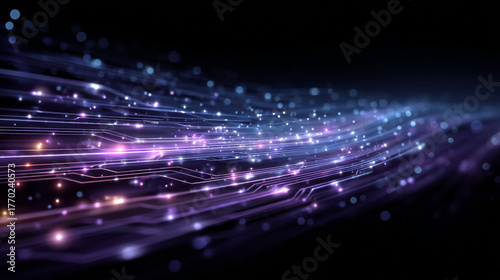 © TABMOS, Obraz premium Futuristic Technology Background with Glowing Data Lines and Digital Light Flow