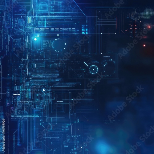 Obraz premium Futuristic technology background with intricate circuit patterns and blue...