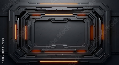 © nur, Obraz premium Futuristic Technology Background with Orange Glowing Lines.