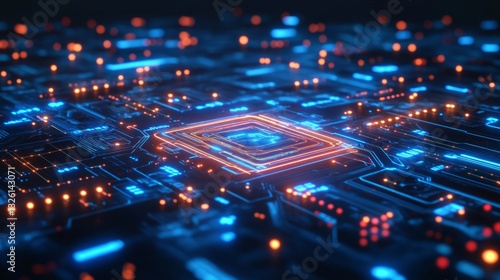 Fototapeta premium Futuristic Technology Circuit Board with Bright Electric Connections