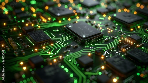 Obraz premium Futuristic Technology Circuit Board with Glowing Lights