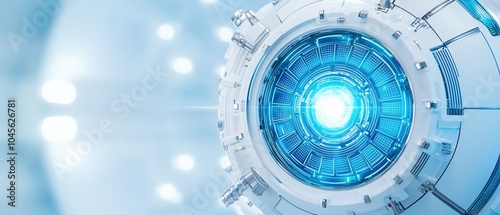 © Sweettymojidesign, Obraz premium Futuristic technology close-up view with glowing blue light and smooth lines, ideal for science fiction concepts.