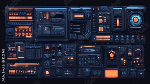 © GenerativeAIpicture, Obraz premium Futuristic Technology Control Panel Interface Design Vector Illustration