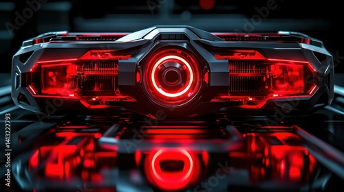 Fototapeta premium Futuristic technology device with glowing red components. Advanced, sleek design. Intricate details. High-tech, futuristic, advanced, and powerful