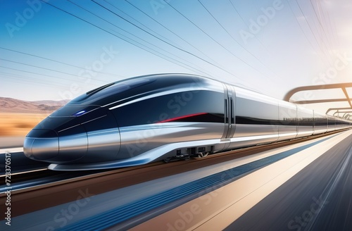 Fototapeta premium futuristic technology, fast moving train in motion blur