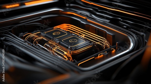 © Tri, Naklejka premium Futuristic Technology: Glowing Core of Advanced Computer System
