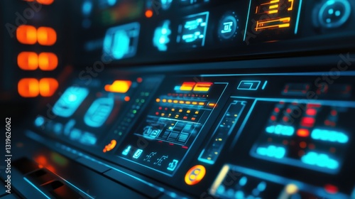 Obraz premium Futuristic Technology Interface, A Close-Up View of a Sci-Fi Control Panel