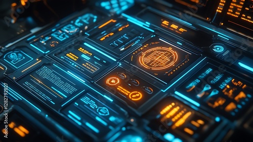 Obraz premium Futuristic Technology Interface: A Cyberpunk Digital Dashboard Display