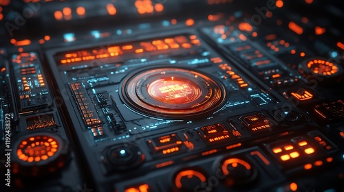 © MUMTAZ, Obraz premium Futuristic Technology Interface: Cyberpunk Digital Panel Design