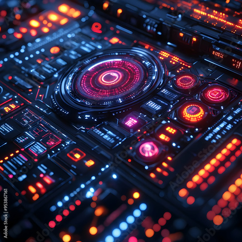 © Asih, Obraz premium Futuristic Technology Interface 3D Illustration