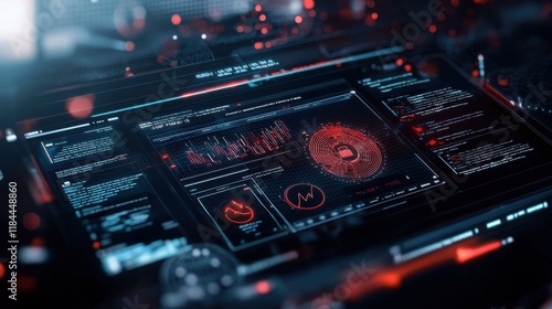© ADD PHOTO, Obraz premium Futuristic Technology Interface Dashboard with Cyberpunk Inspired HUD Elements